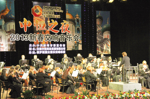又讯(记者 马天)昨晚,由市委宣传部主办、安徽中恒商业发展有限公司承办的“中恒之夜——2013新春交响音乐会”在蚌埠大剧院举行。市领导江娅、王勇勇、周勇、鲍子雨、张力量、薛惠祥与上千市民一起观看演出。